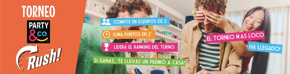 Llega el torneo oficial de Party & Co. Rush, una experiencia llena de caos, adrenalina, risas y desafíos para todos los públicos. Participa en equipos de 2 personas y compite contra otra pareja en una partida exprés: ¡Tenéis 2 minutos para superar el máximo número de pruebas y sumar puntos! La pareja ganadora del duelo entrará en el ranking del torneo Party & Co. Rush.