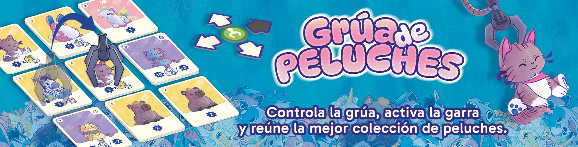 En tu turno, deberás manipular la máquina de peluches para obtener sus mejores ejemplares y, de paso, dificultarle el trabajo al resto de participantes. Deberás gastar y recargar cuidadosamente tus flechas para mover la garra de la máquina. En su turno, cada participante conseguirá más peluches de la máquina a su colección, los cuales le otorgarán puntos de diversas formas al final de partida. Gasta y recarga cuidadosamente tus flechas para mover la ficha de Garra y conseguir peluches para tu colección, que te otorgarán puntos de diversas formas al final de la partida.